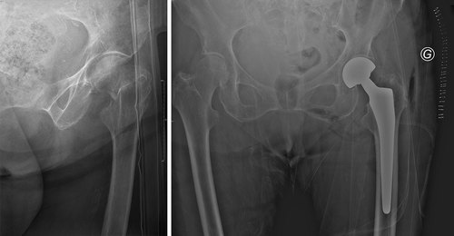 L’arthroplastie : avec mise en place d’une prothèse de hanche, qu’elle soit totale ou intermédiaire avec une cupule cotyloïdienne mobile.